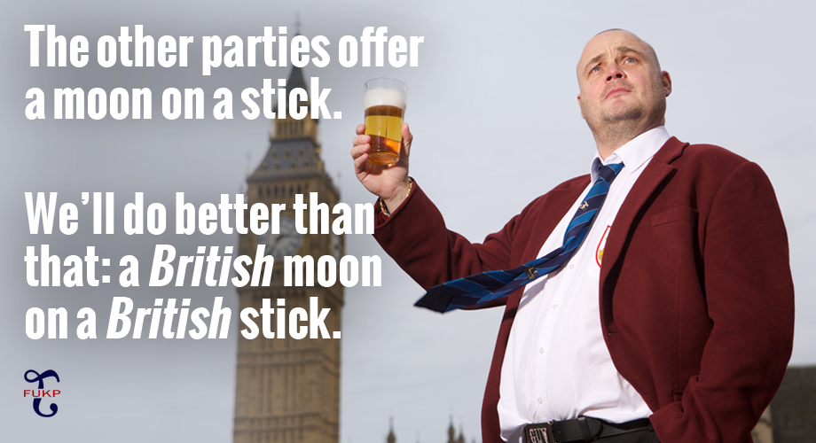He has also set up a www.thepublandlord.com with the slogan: "Other parties offer the moon on a stick. We'll do better than that: a British moon on a British stick."